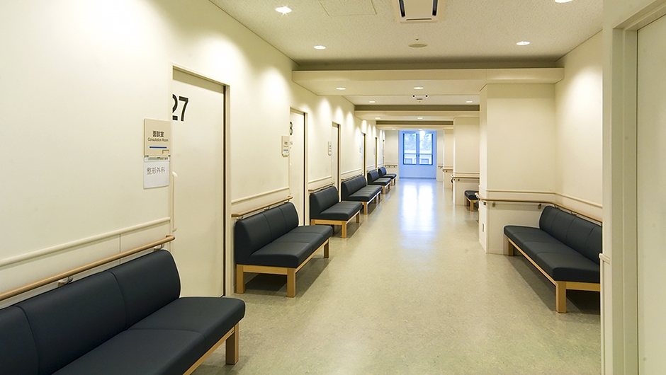 待合のベンチは特注品で、シンプルなデザインが落ち着きある空間を創出。背座は、1席ごとに取り外して張替えができ、パネル脚はメラミン化粧板貼りにするなどメンテナンス性にも優れています。また、様々な利用者を想定して安全性などの配慮もなされました。外待合や中待合など十分な空間とベンチが確保され、来院者の心のケアを支えています。