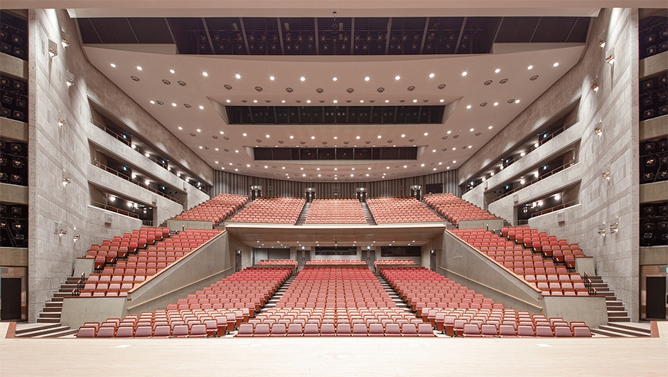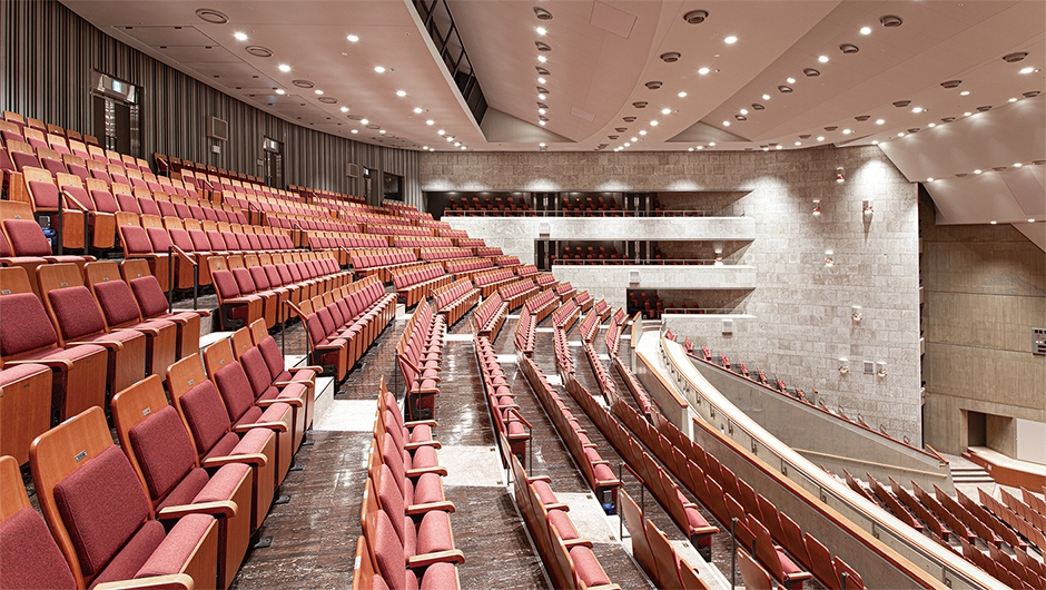 優良ホール100選にも指定されている栃木県総合文化センターでは、1991年の開館以来となる大規模改修工事を実施。2020年4月1日にリニューアルオープンしました。幅広いジャンルの催し物が上演可能なメインホールは、釣り天井や舞台装置の改修がなされたほか、客席張地も一新され、一定間隔ごとに色を変えることで座席全体がグラデーションで彩られています。また、可動式ステージを採用しているサブホールは、客席の幅が広がり、座り心地がよくなりました。