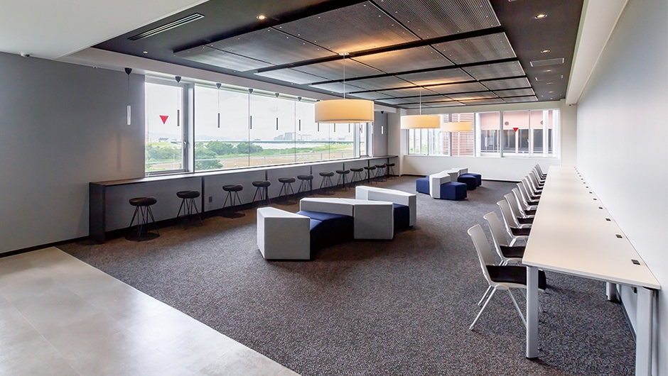 キャンパス環境の整備を進めている大阪工業大学 大宮キャンパスに、3号館が竣工しました。座席の一部に電源を配備した講義室に加え、ロビースペースにレイアウト変更が容易な家具が配置されており、人数や用途に合わせて自由に利用できる空間となっています。
