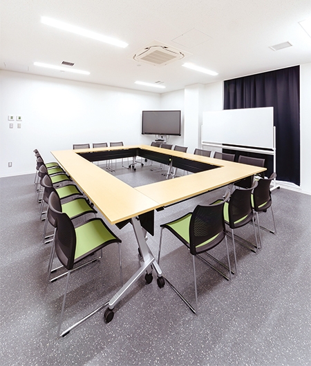 ミーティングルーム/イス:ルッシュ、テーブル:CTZ、ホワイトボード、電子黒板