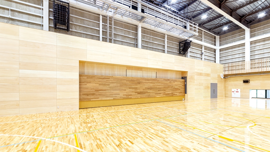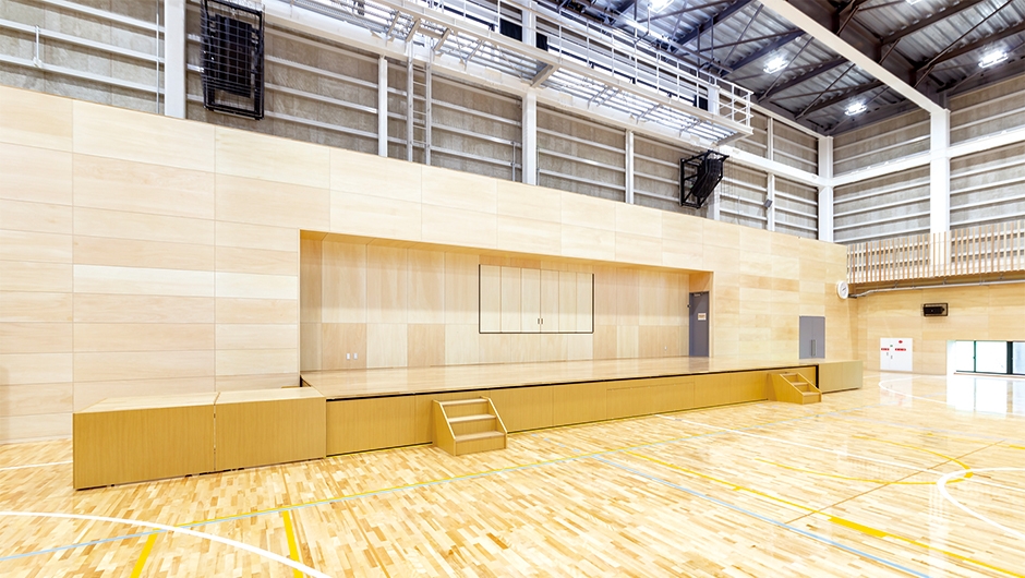 旧体育館は入学式・卒業式など主に式典を行う施設として活用していましたが、着工から約1年を経て完成した新体育館は、式典以外にも大学祭などのイベント活用や体育授業、クラブ活動などの体育施設機能を併せ持つ多機能施設となっています。多機能施設として使用する点を重視し、家具の移動や収納に優れた利便性を発揮する軽量のスタッキングチェアが採用されています。
