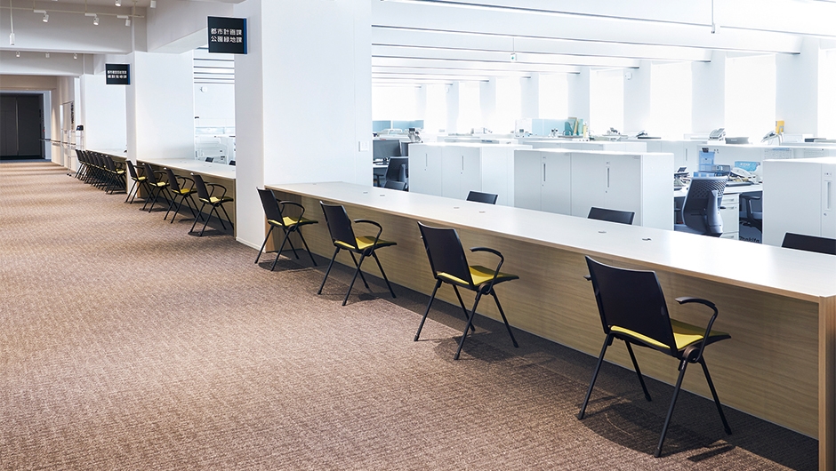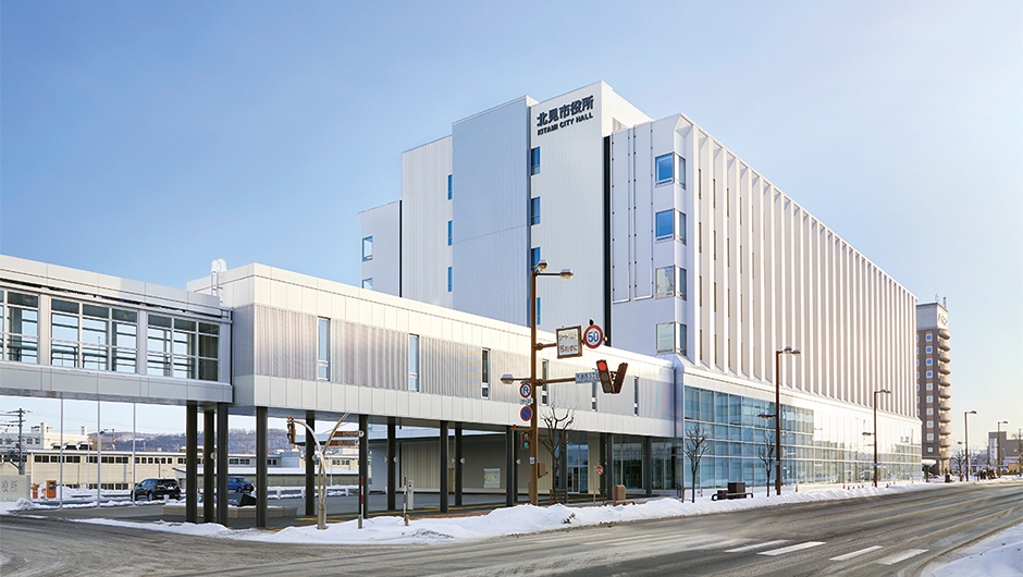 北見市は、「つどい・にぎわい・つながる」市民のための庁舎を基本理念に、市内に分散した庁舎機能を集約した新庁舎を建設。2021年1月より供用を開始しました。 1・2階は市民利用頻度の高い行政窓口や市民交流、情報発信機能を中心に配置。6階には木の温もりを感じる重厚で落ち着いた議場をはじめ議会運営に必要な諸室が配置されています。北見駅に隣接する集客施設と接続された新庁舎は、市民サービスの向上に加え、交流や賑わいを創出する地域交流拠点として中心市街地の活性化に寄与することも期待されています。