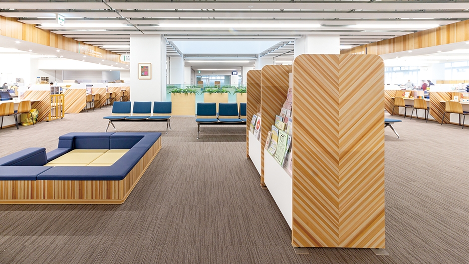 館内には、香川県産の杉柾目材を用いた造作家具が設置されており、明るく温かみのある空間となっています。そのほか、地中熱を利用した再生可能エネルギーを活用するなど、環境に配慮した施設となっています。