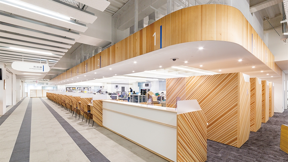 丸亀市は、市庁舎の老朽化に伴う耐震性や狭隘化の問題を解消をするため、新庁舎の整備を計画。市民交流活動センター機能を併設した施設として、2021年3月にオープンしました。