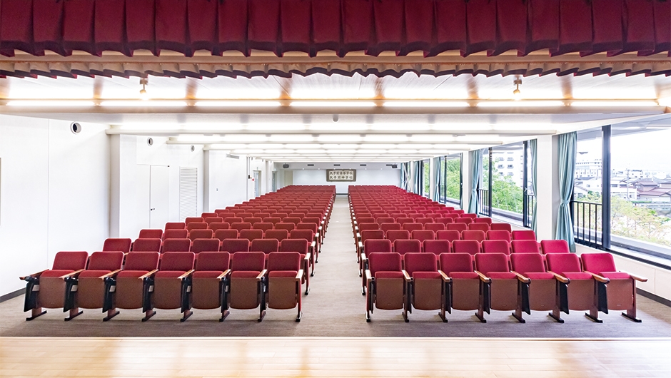 小講堂は、部活動や同好会の講演・発表会のほか、客席にはタブレットテーブルが装備されており、講演会等の学内行事など幅広い用途で利用されています。また、今回の入替えで座席幅が450mmから500mmに拡大され、ゆったりと利用できるようになりました。