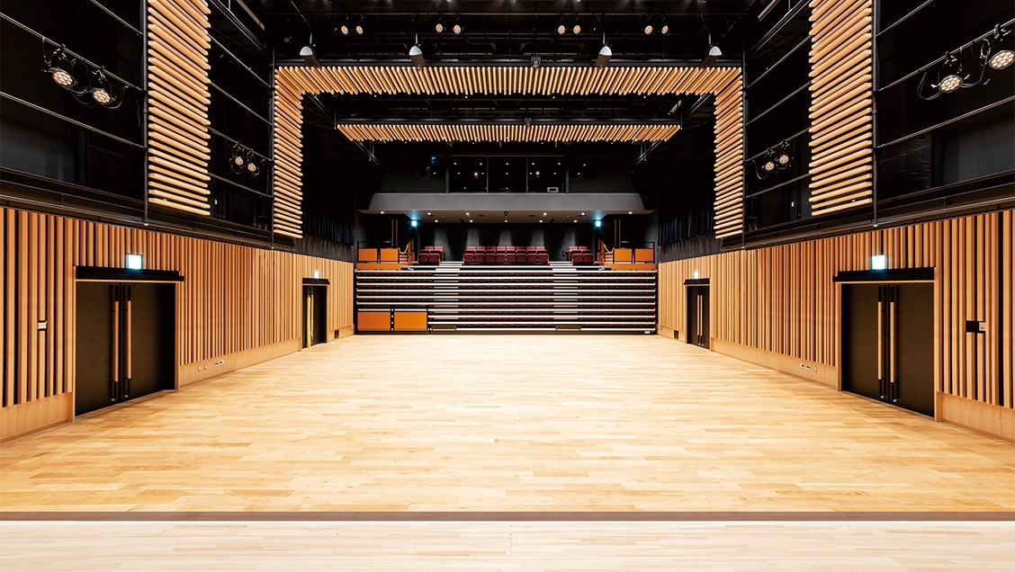 芸術文化体験棟では、アーティスト交流や幼児向けアートプログラム、ホールを活用した音楽、伝統芸能体験プログラムが実施され、ホールには収納可能な移動観覧席が設置されており、リサイタルやコンサート、講演を開催することもできます。