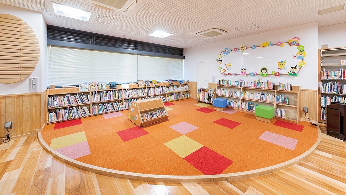 児童エリア/書架、絵本架、掲示板