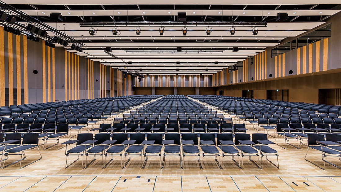 大ホールのほか、702人収容できる中ホール、300人収容できる大会議室や11室の小会議室を備えており、小規模な会議から大規模な学会まで、多様な用途の催事に利用することができます。交流拠点施設との一体利用が可能な交流広場「宮みらいライトヒル」や、飲食店やホテルが入る複合施設と隣接しており、地域の賑わいを創出する中心的な施設として期待されています。