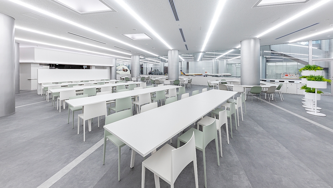 1階 食堂/イス:セイルほか、テーブル、円形テーブル、プランター、フェイクグリーン
