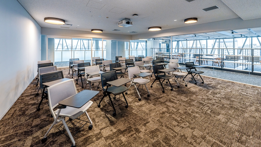 地上17階、地下1階の都市型高層キャンパスは、学部ごとにフロアを設けるのを止め、分野横断的な交流を促しており、自由闊達な雰囲気の中で交流と学びを深めることが期待されています。