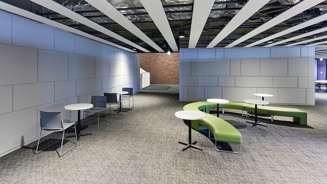 4階 共用スペース/イス:チャット、テーブル:DTN、丸テーブル、ベンチ:ステップ