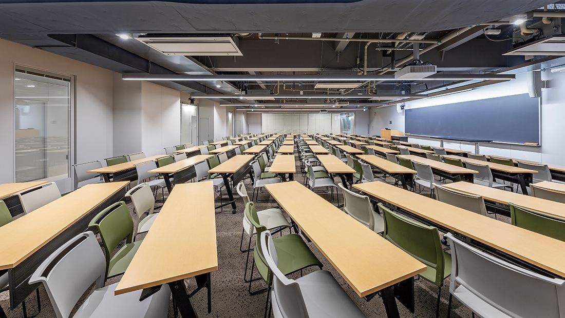 2階 180人教室/イス:ティーポ、テーブル:CTZ特注品