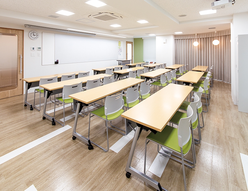 5階 教室/イス:ペン、テーブル:フリプト、教卓:S-30、ロッカー、ゴミ箱、時計:KX236W