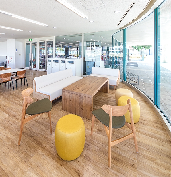 リニューアルに伴い、イス、テーブル等の什器も全て入れ替えられ、1人席やソファ席、電源を利用できる席など、食事だけでなく自習や休憩などさまざまな用途に利用できる席が設けられています。