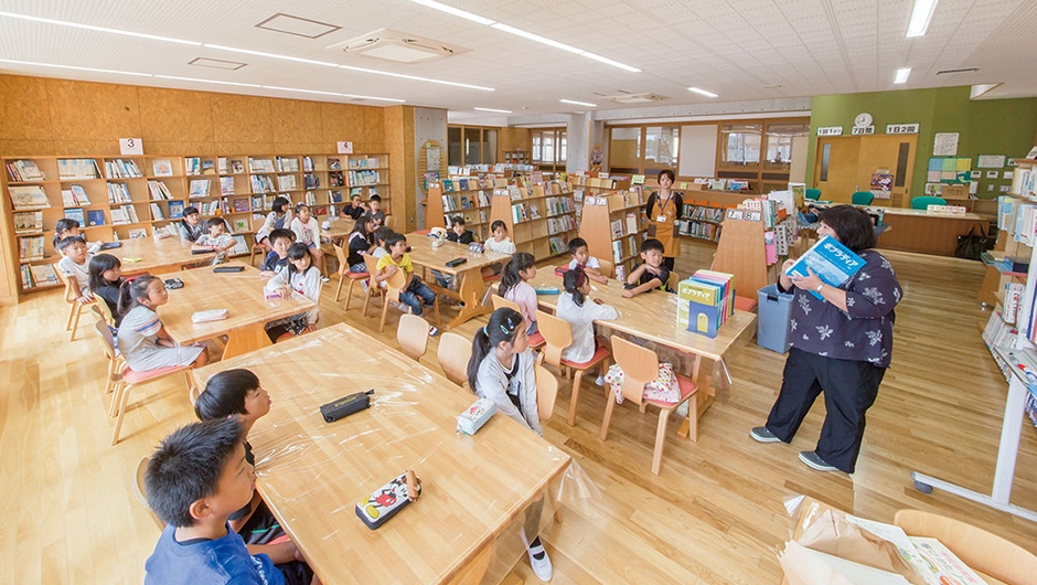 亀山市立川崎小学校では、建物の老朽化により防災面や安全面に課題を抱えていたことから、旧校舎を取り壊し新校舎を建設。新校舎内には、図書室とPC教室を備えた「メディアセンター」や、地域住民らが気軽に立ち寄り学習支援ができる「ふれあい活動室」が設置されています。亀山市は学校図書館支援事業を市の主要事業と位置づけ、図書活動を推進しており、メディアセンターは児童が普段から行き来するコミュニティーモールに面している校舎2階の中心に設置され、多くの児童に利用される図書室へと生まれ変わっています。