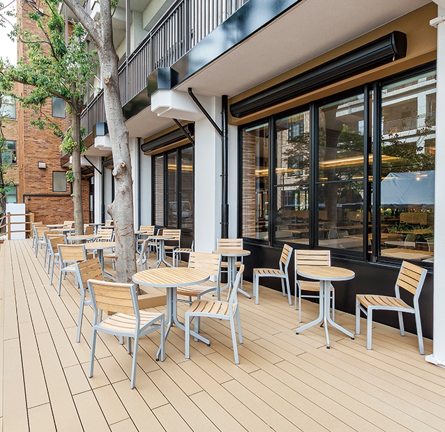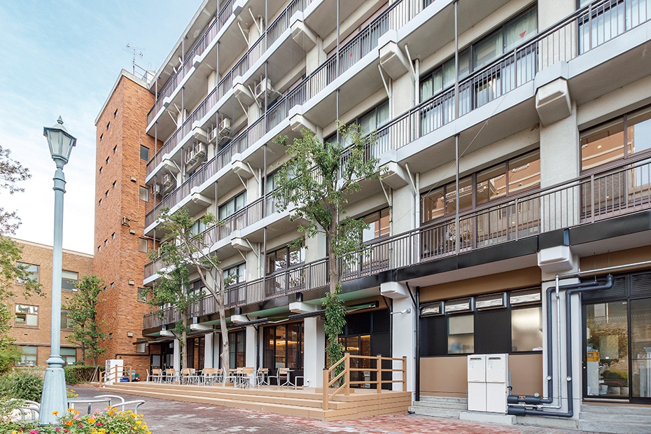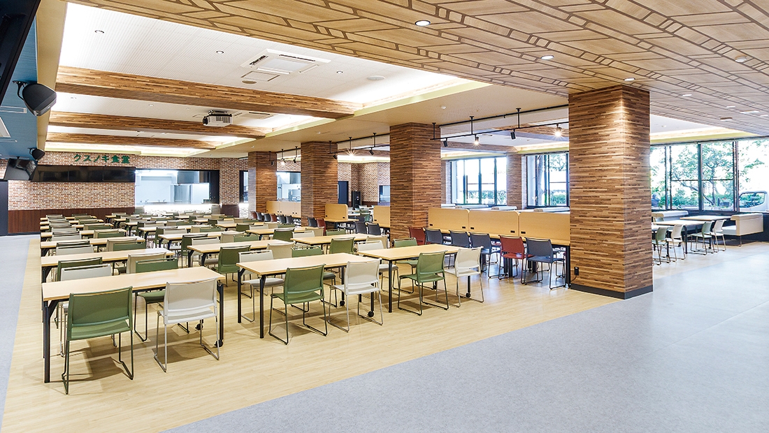 さまざまな交流の場として、内外の学園関係者の利用も想定してリニューアルされた食堂には、カウンター席やファミリーレストランのようなソファ席、中庭の若草庭園を望むテラス席など、用途に合わせて選べる多様な席が設置されています。
