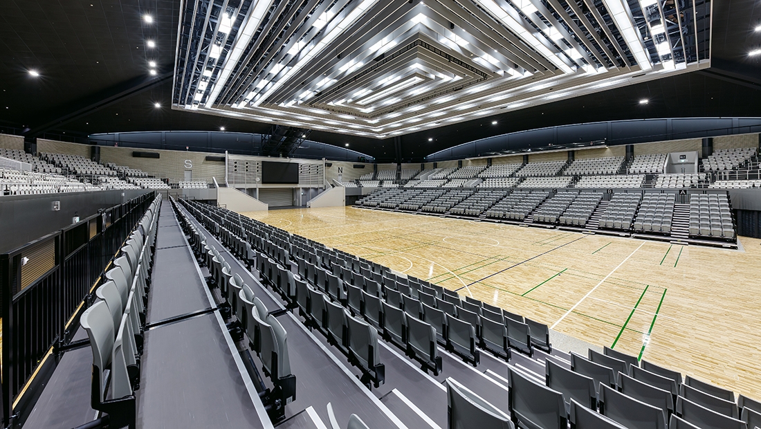 同体育館は1964年の東京五輪の会場として使用されて以来、年間を通して各種スポーツの大会等で利用されており、この度の改修では、天井、照明、床が刷新されたほか、スタンドの観覧席は、2021年の東京五輪の競泳会場だった「東京アクアティクスセンター」から観覧席の一部が移設されました。また、移動観覧席も全面的にリニューアルされ、施設の機能向上が図られています。